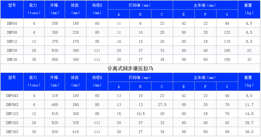 ◆ 操作出力,有自4 Ton 到30 Ton,可供選擇。
