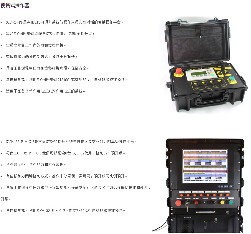 主要應(yīng)用建筑物的移位、頂升,古樹(shù)名木整體平移,建筑物斜傾,結(jié)構(gòu)加固補(bǔ)強(qiáng)。橋梁支座更換,大跨度鋼橋的合攏,橋梁不能滿(mǎn)足凈空高度而進(jìn)行的改造等;