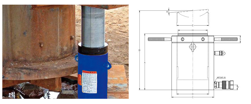 螺母鎖定油缸 ◆ 單作用,負載回縮 ; ◆ 機械式螺母鎖定使負載更安全; ◆ 烤漆表面提供更強的抗腐蝕能力; ◆ 溢流孔兼有限制行程的功能; ◆ 可承受的偏載達液壓油缸額定承載