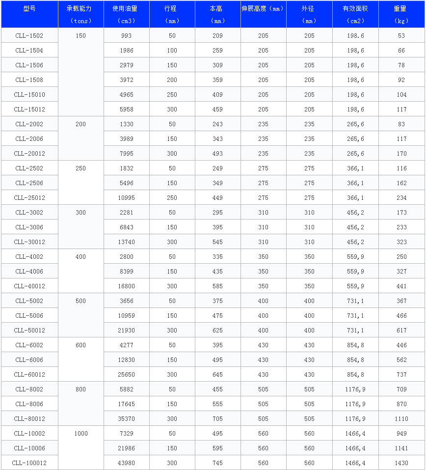 ◆ 承載能力1000 ton以上,行程可達100,200和300mm