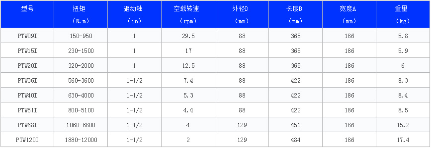◆ 7-葉片式高性能氣動馬達,效率高,使扳手可持續輸出無沖擊扭矩;