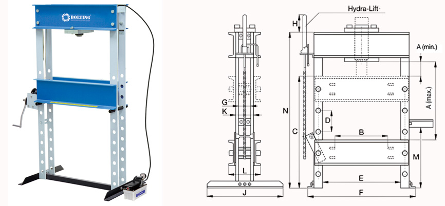 ◆ 利用用戶(hù)提供的支撐腿,壓床也能水平使用以適合特殊的應(yīng)用場(chǎng)合;