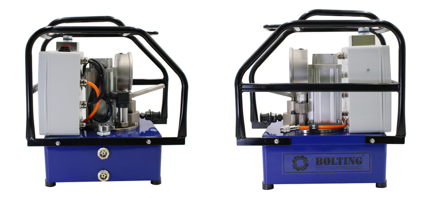 250Mpa電動液壓拉伸器泵(超高壓電動泵) ◆ 智能液壓拉伸泵泵具備數控一鍵旋鈕操作,簡單便捷。 ◆壓力清晰可見,具備自診斷和測試功能,自動保壓、補壓。 ◆電器配備風冷卻器,可8小時